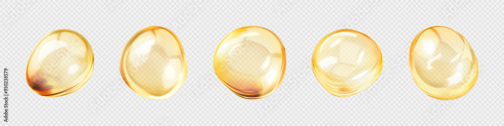 Collagen serum bubbles. Cosmetic essence drops. Concept skincare cosmetics solution. Vector realistic illustration #930238579