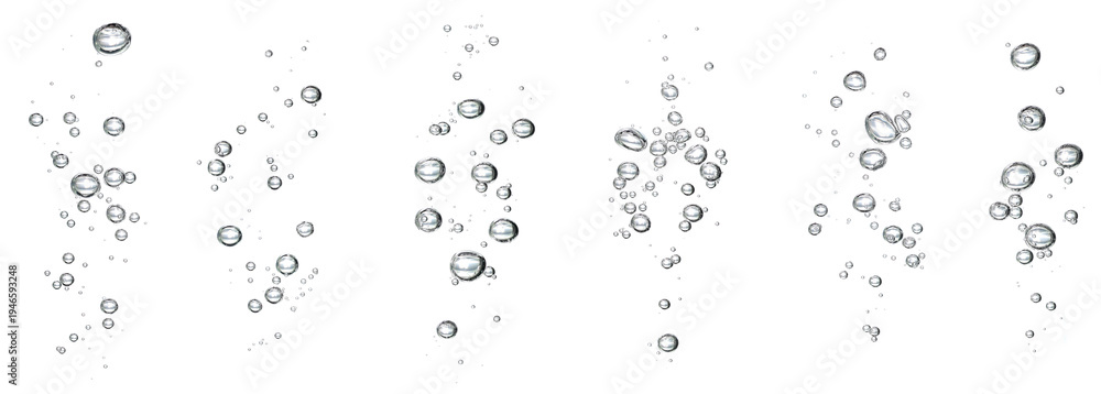Collection black water bubble, oxygen air isolated on a white background. underwater clear liquid with bubbles flowing up to the water surface. drop air in water #1946593248