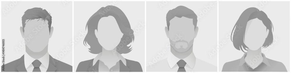 Collection of avatar defoult photo placeholder grayscale anonymous silhouette illustrations displaying individuals in professional business attire. Used for profiles or presentations. #1484746003