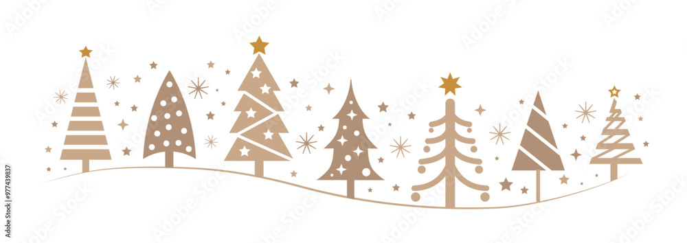 Collection of beige Christmas trees and golden Stars in different design - vector illustration #977439837