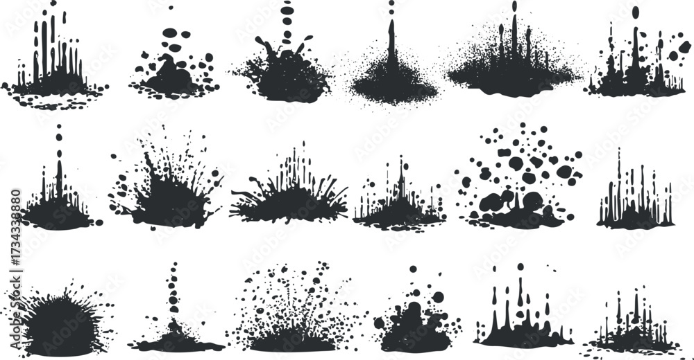 Collection of black ink splashes and textures for creative design and artistic projects.. #1734338880