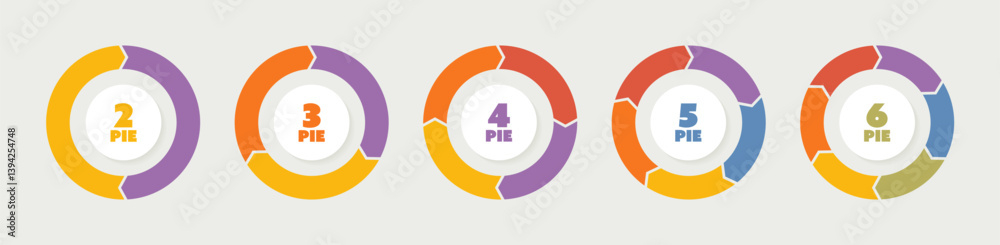 Collection of colourful circle diagrams designs for infographic, business or presentation. Pie chart set with sections or steps from 2 to 6. Vector illustration #1394254748
