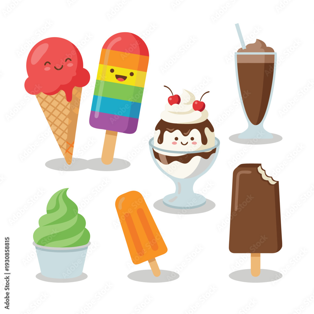 Collection of Cute Cartoon Ice Cream and Popsicle Desserts. #1930858815