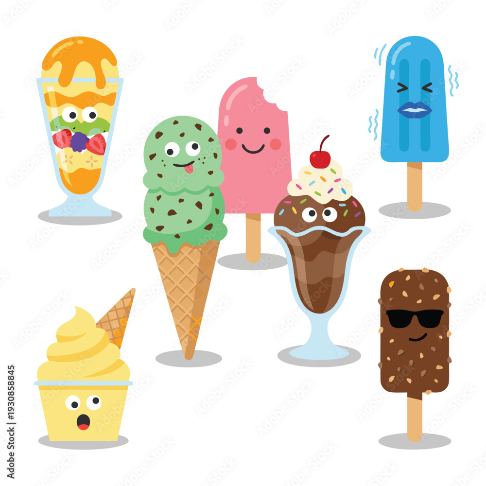 Collection of Cute Cartoon Ice Cream Characters. #1930858845
