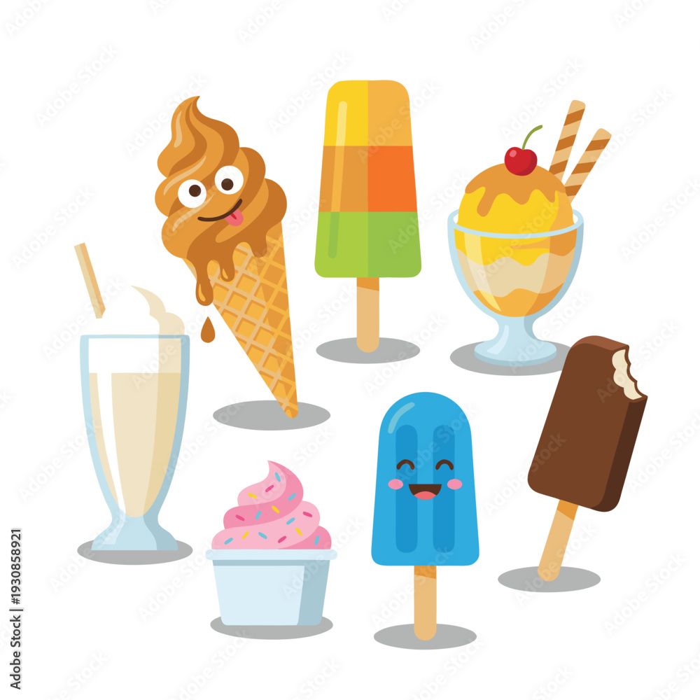 Collection of Cute Cartoon Ice Cream Desserts. #1930858921