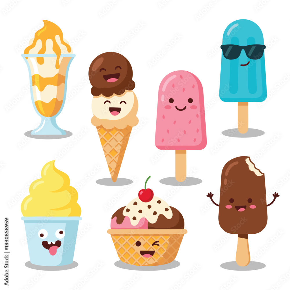 Collection of Cute Kawaii Ice Cream Characters. #1930858959