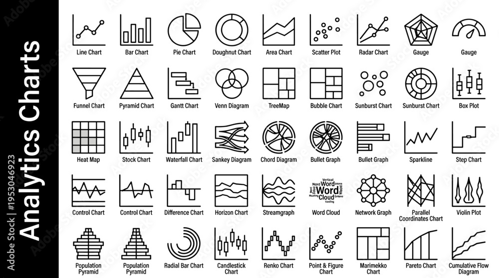 Collection of diverse analytics charts and graphs for data visualization and business intelligence #1953046923