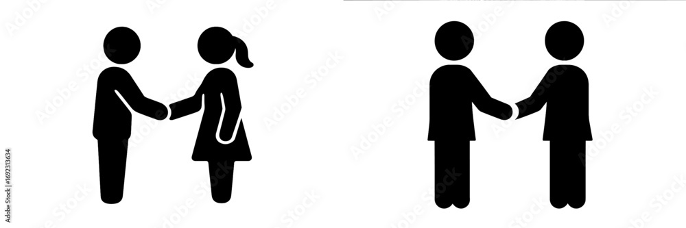 Collection of handshake icons showing stick figure people shaking hands to represent a business agreement or partnership #1692313634