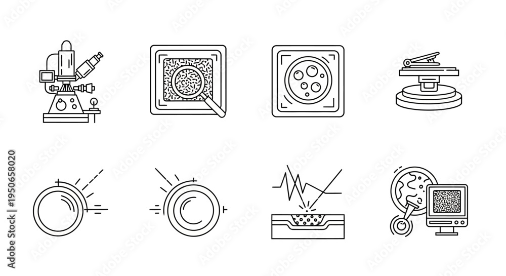 Collection of science and laboratory icons illustrating research, technology, and laboratory tools in a cohesive set. #1950658020