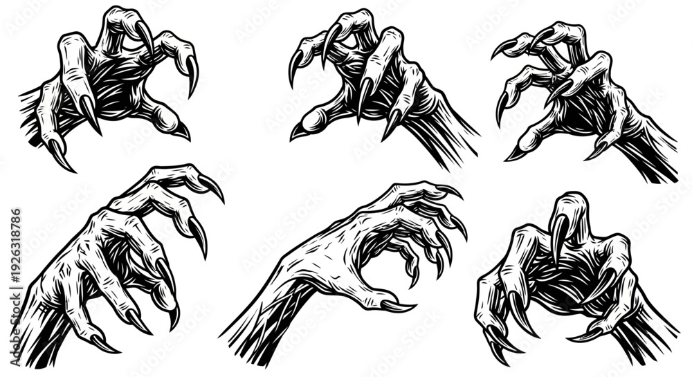 Collection of Six Illustrations of Terrifying Monster Claws and Hands #1926318786