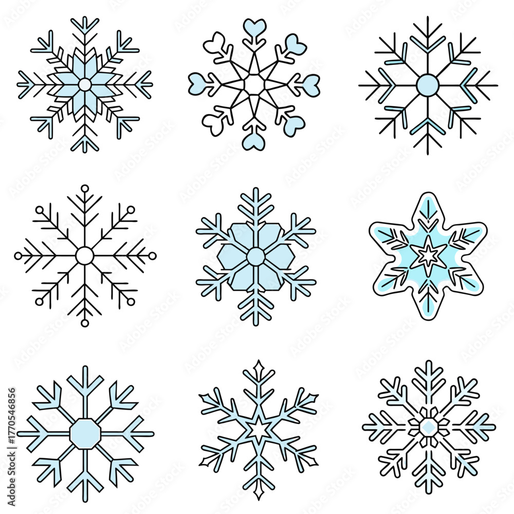 Collection of snowflake icons for winter-themed designs in promotional materials and holiday decorations #1770546856