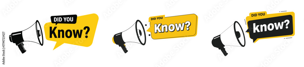 Collection of vector icons featuring a megaphone with the message did you know, informative and engaging design elements on transparent background #1794723427