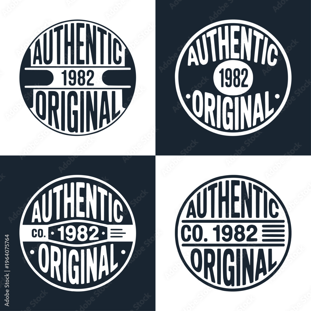 Collection of vintage circular emblems celebrating the authentic original birth year nineteen eighty two design #1964075764
