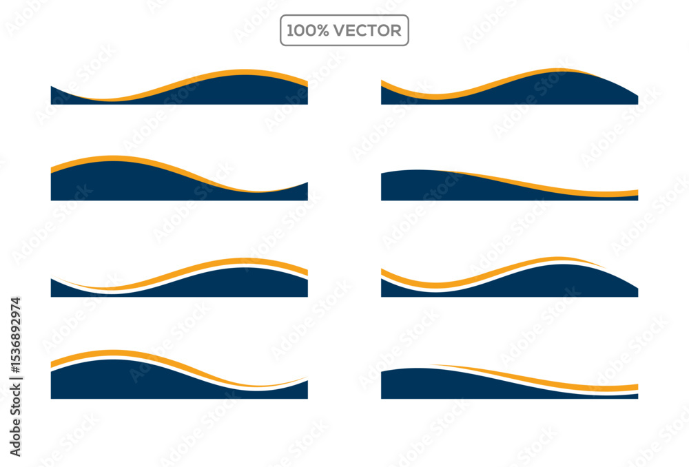 Collection of wave separator footers, modern dividers shapes vector design illustration element #1536892974