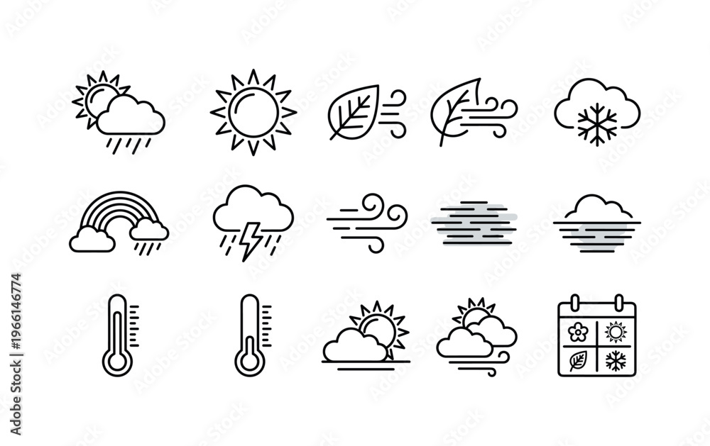 Collection of weather icons representing different meteorological phenomena and seasons #1966146774