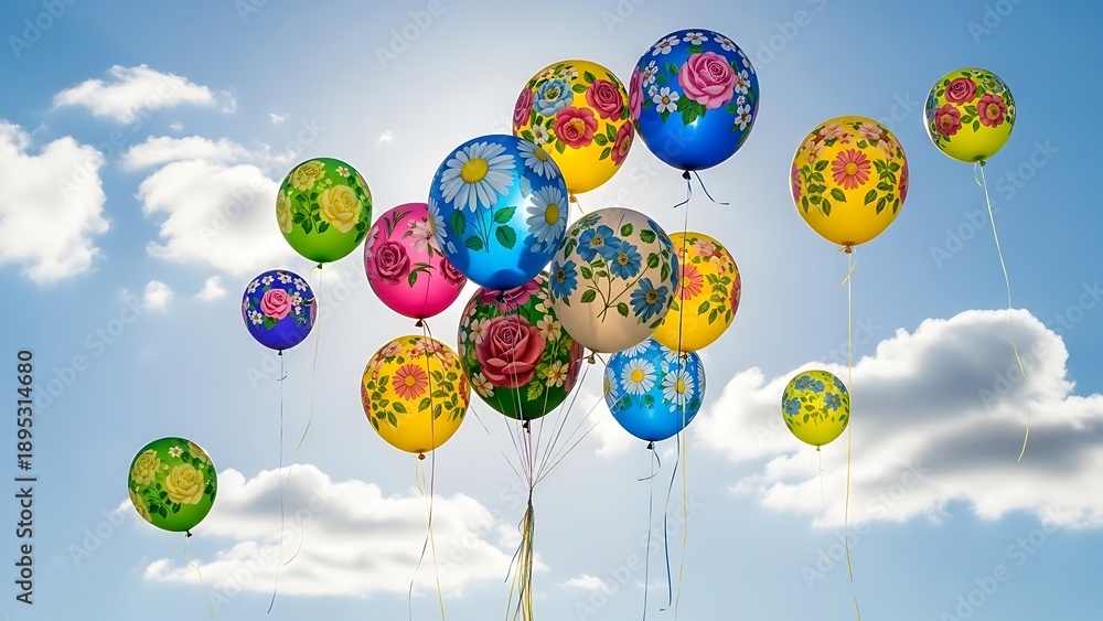 Colorful balloons floating in the sky #1895314680