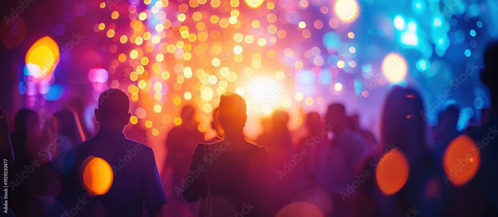 Colorful Bokeh Lights with Crowd Silhouette at Night Festival Party #1929230477