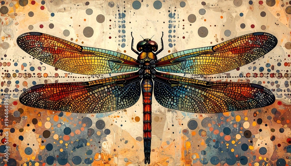 Colorful Dragonfly Art - A Vibrant and Detailed Illustration. #1944849138