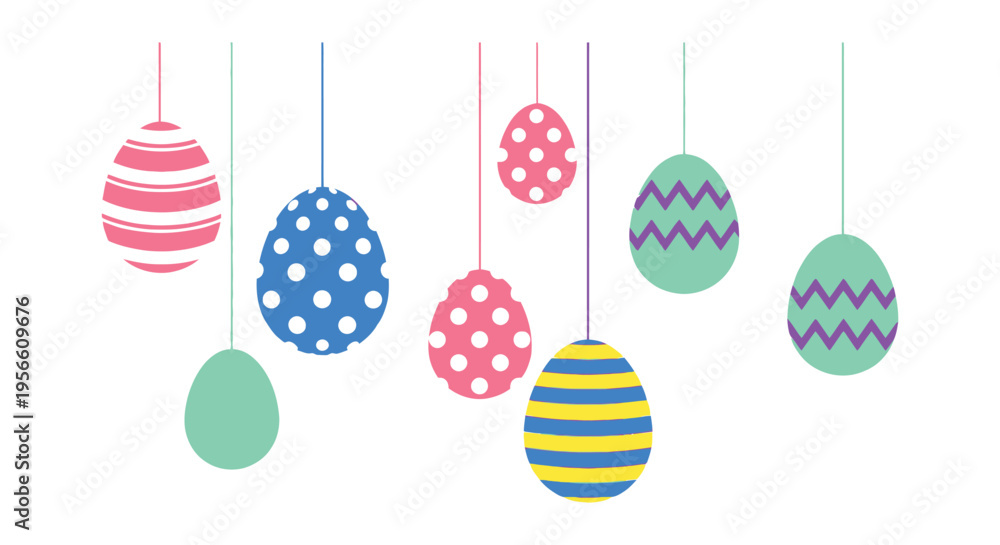 Colorful easter eggs hang from strings creating a festive and cheerful springtime decoration a striking silhouette high quality professional detailed modern #1956609676