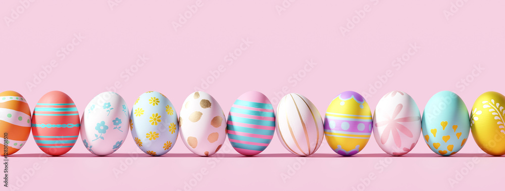 Colorful Easter eggs on pastel pink background. 3d rendering #1283038510