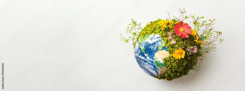 Colorful Flowering Earth With Vibrant Green Moss Symbolizing Sustainability And Environmental Hope#1176024035