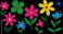 Colorful flowers on a black background, drawn by hand with markers in a style children's drawings. #1754098857