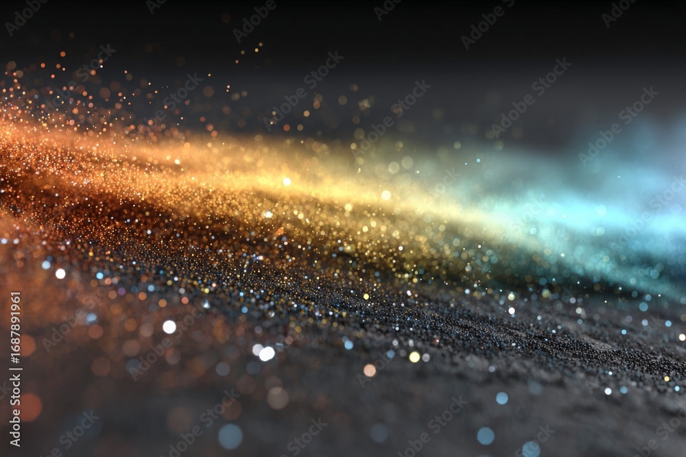 Colorful glitter particles creating a stunning gradient effect on a dark surface at twilight #1687891961