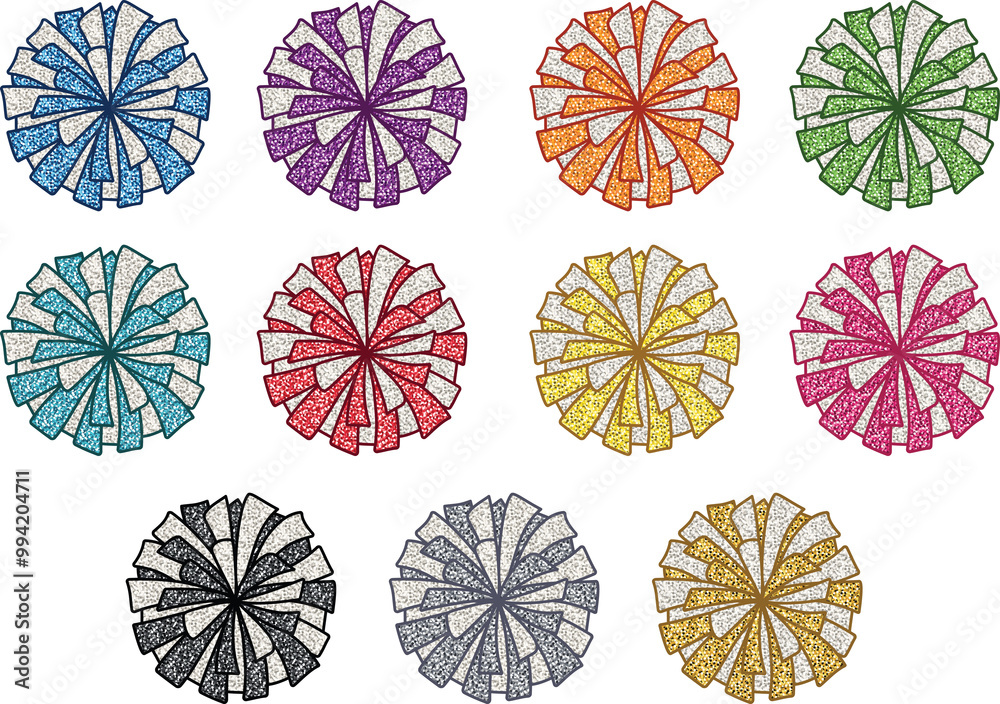 Colorful Glitter Sparkle Cheerleader Pom-Poms Clipart Set #994204711