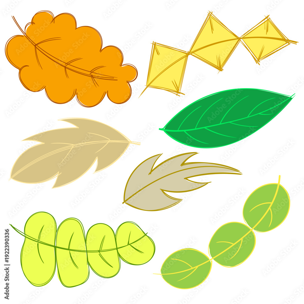 Colorful hand drawn autumn leaf collection isolated on light background. #1922390336