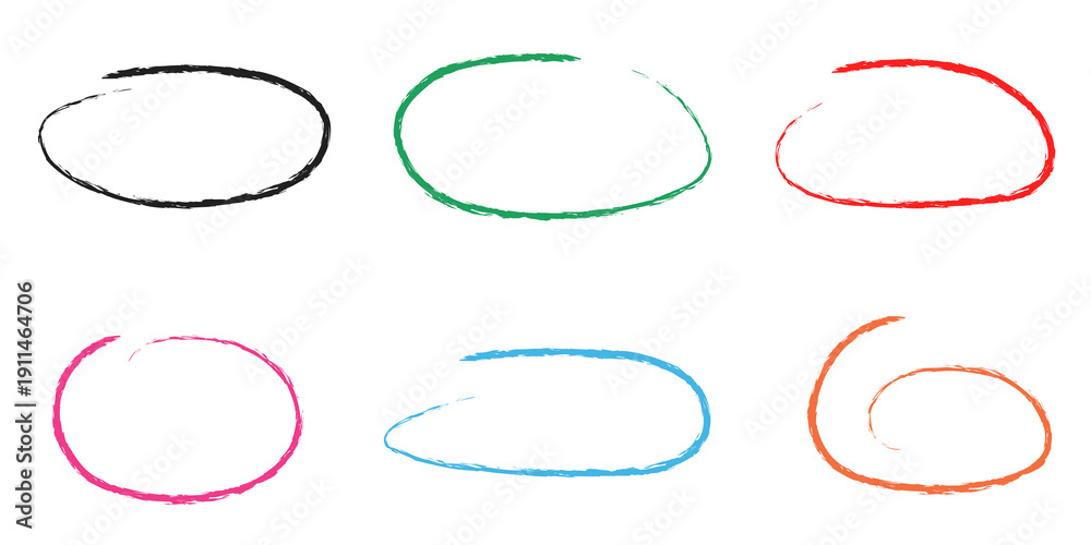 Colorful hand drawn ink brush circle frames and oval highlights isolated on a transparent background #1911464706