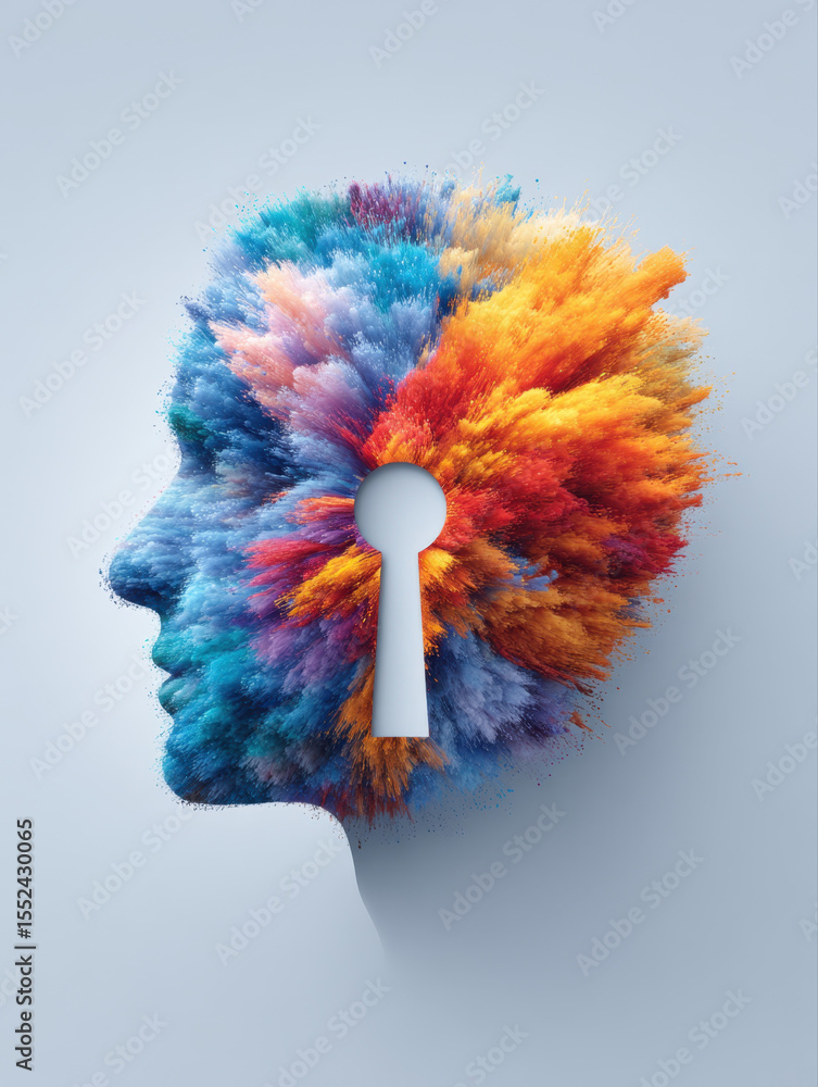Colorful human head silhouette with keyhole shape in center, symbolizing creativity, imagination, and unlocking potential #1552430065