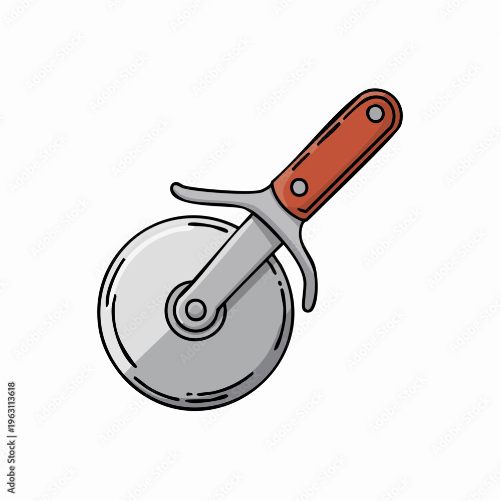 Colorful illustration of a pizza cutter with red handle #1963113618