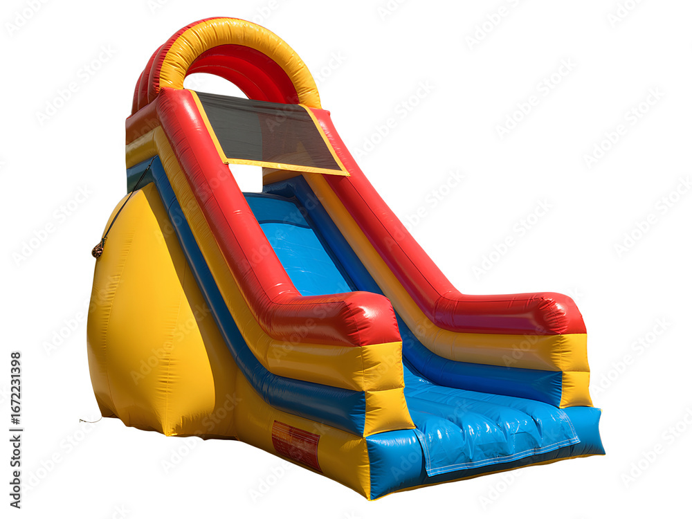Colorful inflatable bounce house slide on a transparent background #1672231398