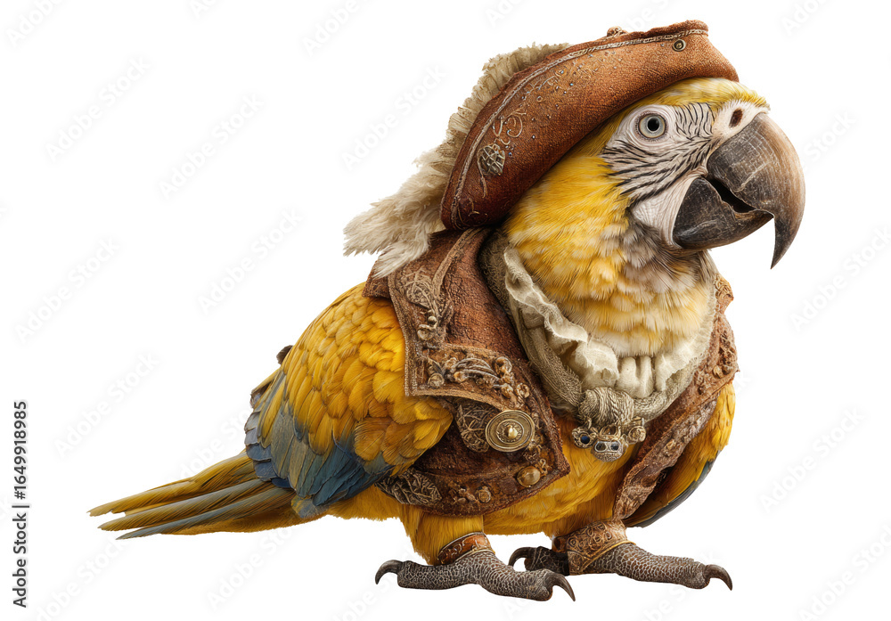 Colorful Parrot in Pirate Costume with Eyepatch on Transparent Background #1649918985