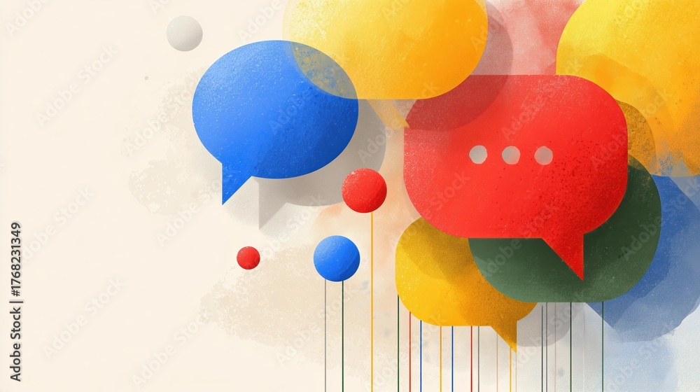 Colorful speech bubbles on a clean minimalist background for effective communication and dialogue #1768231349