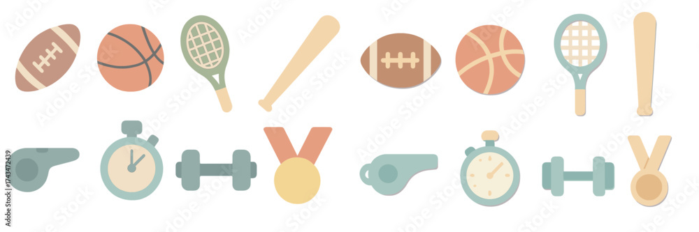Colorful sport icons representing various athletic activities including football, basketball, tennis, and more in a fun design #1743472439