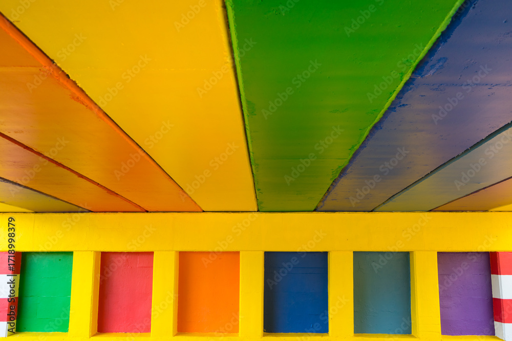 Colorful wall and ceiling structure of bridge. That painting assorted colors architecture of building. blocks with pantone colors variation. #1718998379