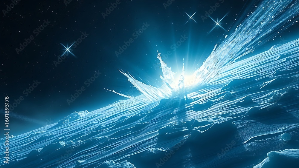 Colossal comet erupting crystalline geysers refracting starlight into prismatic beams. #1601693178