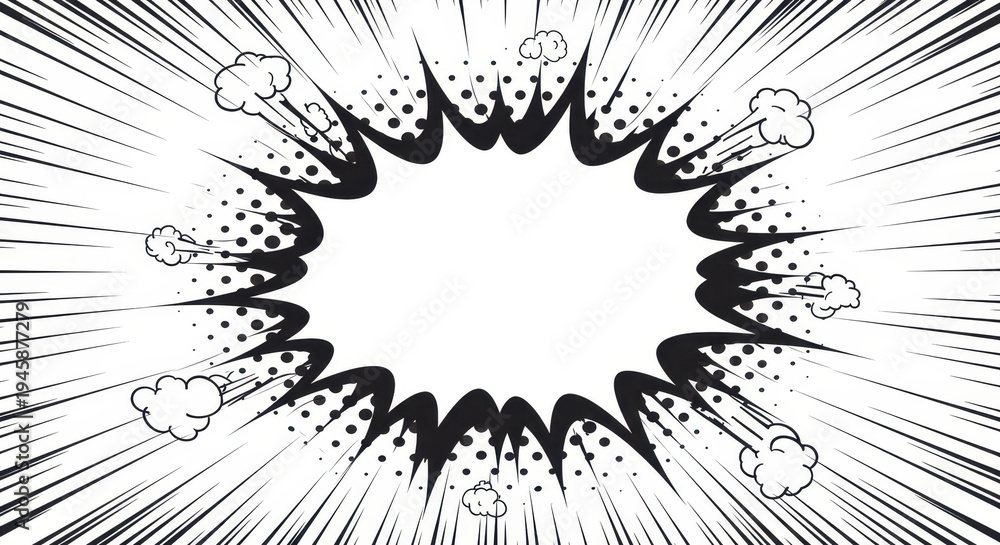 Comic Style Explosion Bubble: A dynamic illustration captures the essence of a powerful burst, with a central speech bubble ready for your message. #1945877279