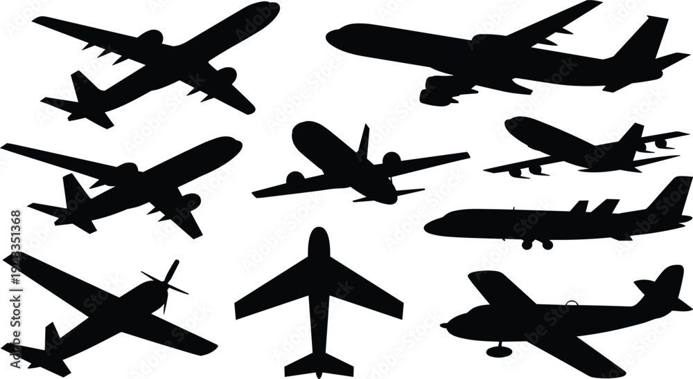 Commercial and Private Airplane Silhouettes Set #1948351368