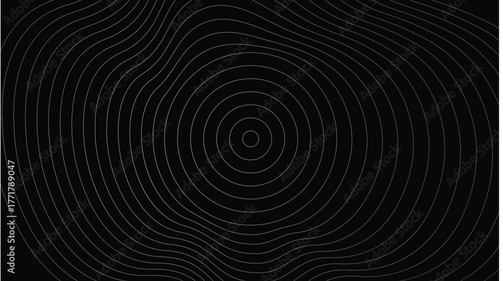 Concentric contour lines on a black background form a sleek, wave-like texture—ideal for modern design, tech visuals, or abstract backgrounds. #1771789047