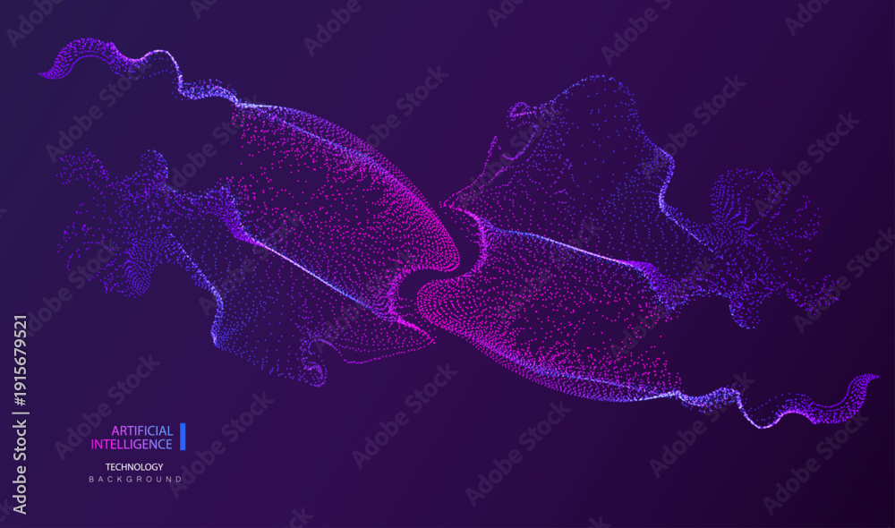 Concept of Ai particle dots glowing abstract background. Technology and science purple vector. #1915679521