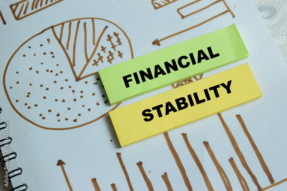 Concept of financial stability write on sticky notes isolated on Wooden Table. For long term security and responsible money planning #1931832670