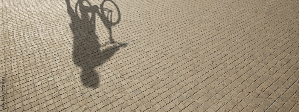 Concept or conceptual background of floor texture surface with a human shadow as silhouette. A 3d illustration metaphor for biking recreation workout, healthy lifestyle for fun leisure cycling design #1770864234
