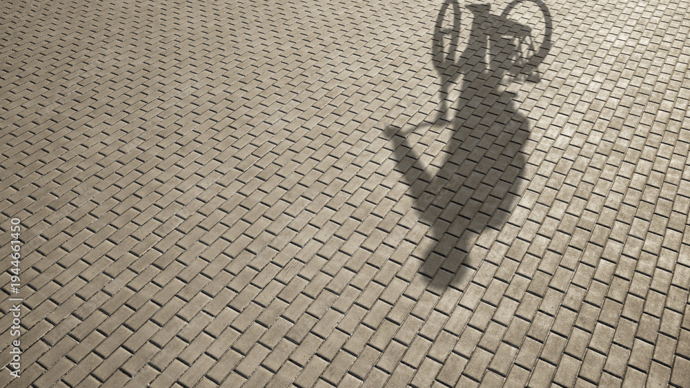 Concept or conceptual background of floor texture surface with a human shadow as silhouette. A 3d illustration metaphor for biking recreation workout, healthy lifestyle for fun leisure cycling design #1944661450