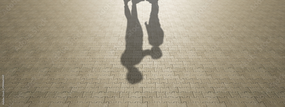 Concept or conceptual background of floor texture surface with a human shadow as silhouette. A 3d illustration metaphor to young childhood education, fun happy family child parent relationship design #1944661441