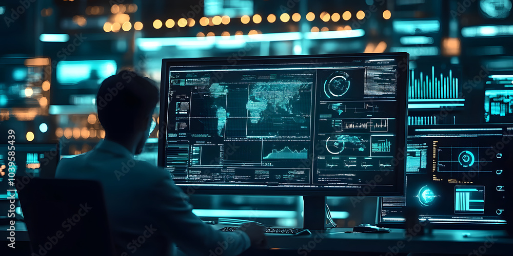 Concepto de seguridad en internet y comercio electrónico. Mujer con ordenador y símbolos de candado cerrado oscuridad #1039585439
