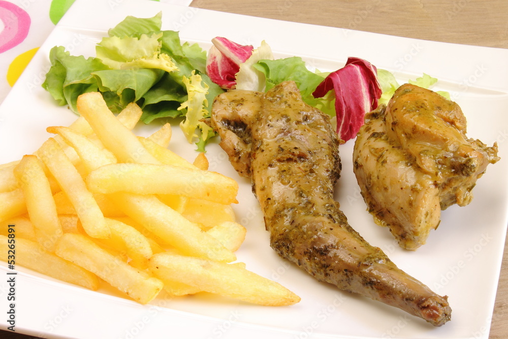 Conejo al ajillo con finas hierbas #53265891