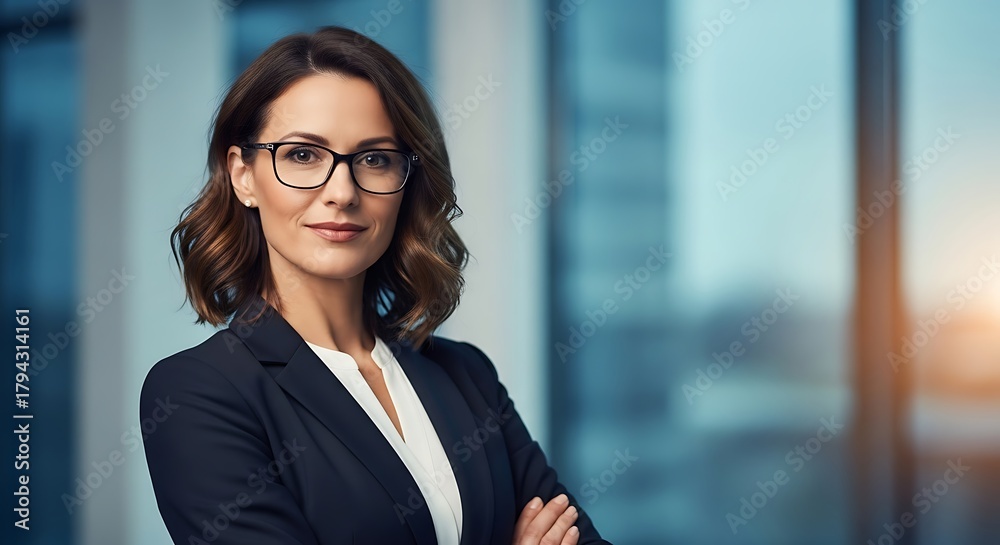 Confident and Empowered Businesswoman Posing with Arms Crossed in Modern Office Setting Seeking Prof.jpg #1794314161