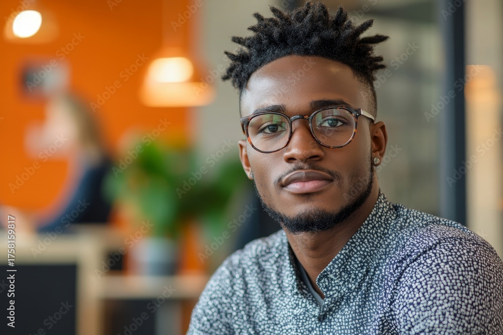 Confident young man with glasses in a modern office setting, showcasing professionalism and readiness while working on business-related tasks, Generative AI #1758159817